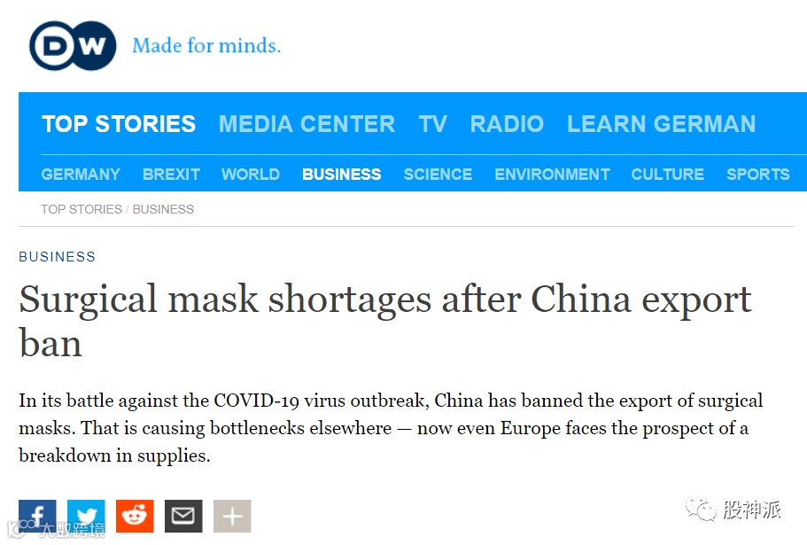 面对确诊数的不断上升,德国的物资储备却并不充裕。早在2月25日,《德国之声》等德国媒体曾指出,由于中国抗击疫情而限制物资出口,导致德国的防疫物资储备不足。