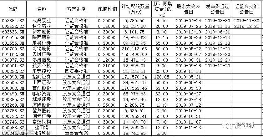 统计显示,目前还有21家上市公司在配股路上,其中凌霄泵业、科伦药业已经拿到配股批文,另外徕木股份、东吴证券、陕西黑猫、天风证券等已经发审过会,还有多家公司配股获股东大会通过或董事会通过。