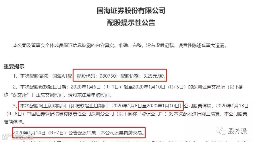 今天是国海证券41亿配股最后一天,停牌前股价5.26元,配股价仅要3.25元,10股配3股,看起来可以更便宜买股票,实际上要股民再“掏钱”,如果不参与,就等于要亏钱。