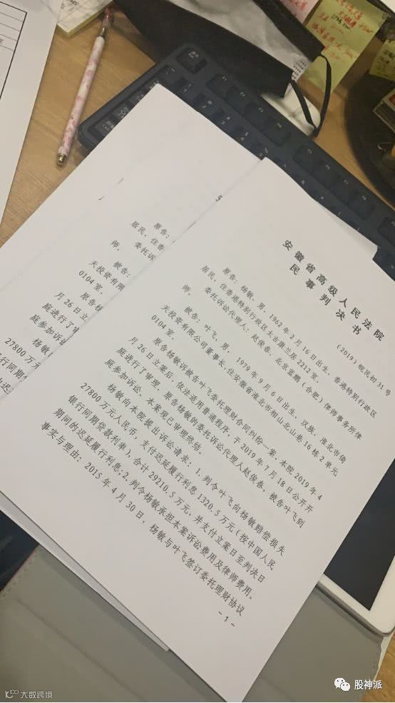 根据最新获悉的判决书,经过数月审理,法院做出的判决部分支持杨敏的诉讼请求。在判决生效之日30日内,叶飞赔偿杨敏损失本金2.224亿元。