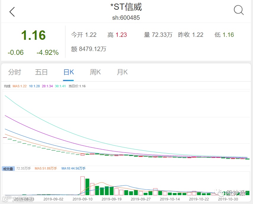 叶飞并没能全身而退。2015年6月12日,叶飞再举杀入*ST信威,以每股50多元的价格重仓买入4.2亿元,截至目前,*ST信威的股价报1.16元/股。
