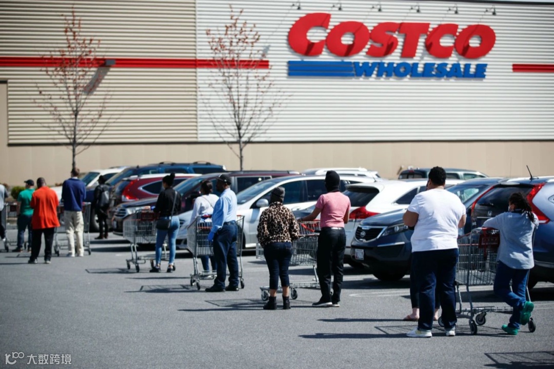 4月3日,在美国首都华盛顿,人们在一家超市外保持“社交距离”排队
