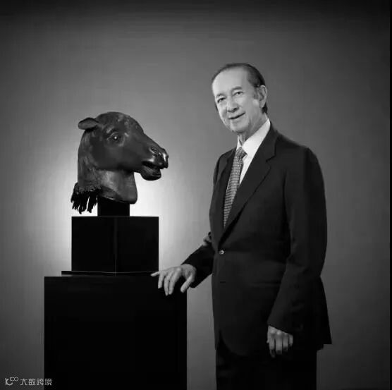 港澳知名企业家、爱国人士何鸿燊先生与“圆明园马首铜像”合影(图片来源:国家文物局)