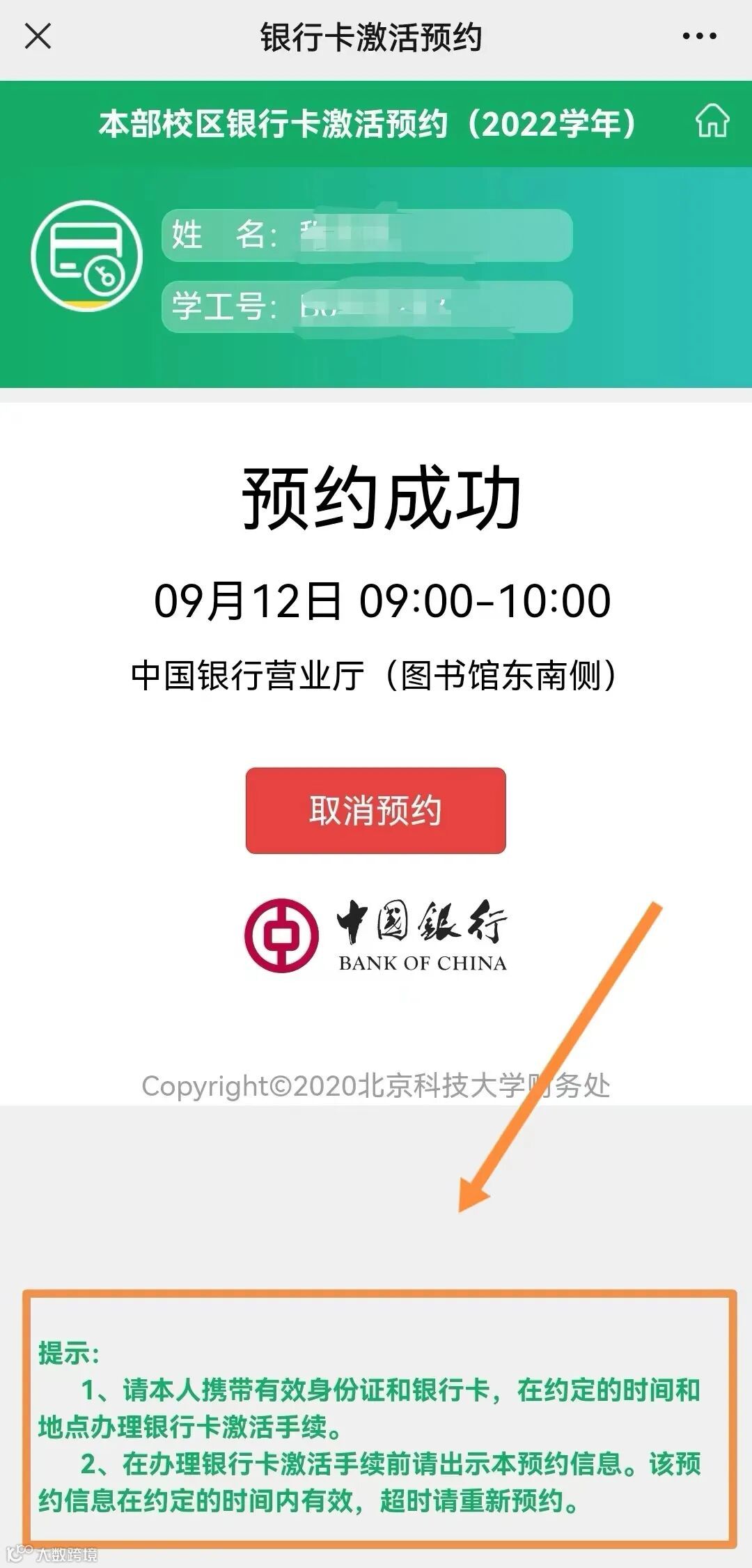 ※如不能按时办理激活手续,请及时取消预约,重新申请。