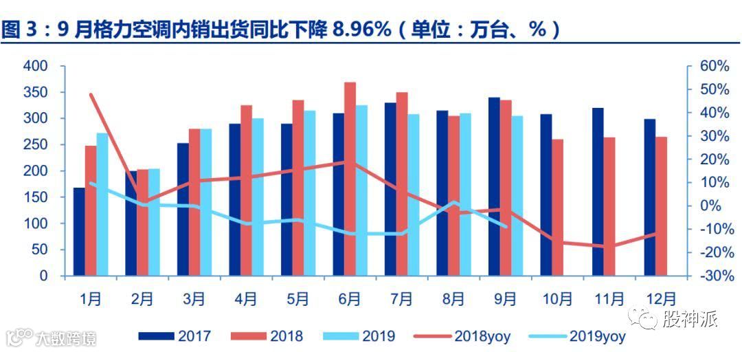 截至9月份,格力、美的、海尔、奥克斯内销增速分别为-8.96%、52%、40%和42.86%,其中格力5-9月连续三个月内销出货下滑,控制出货意图明显。