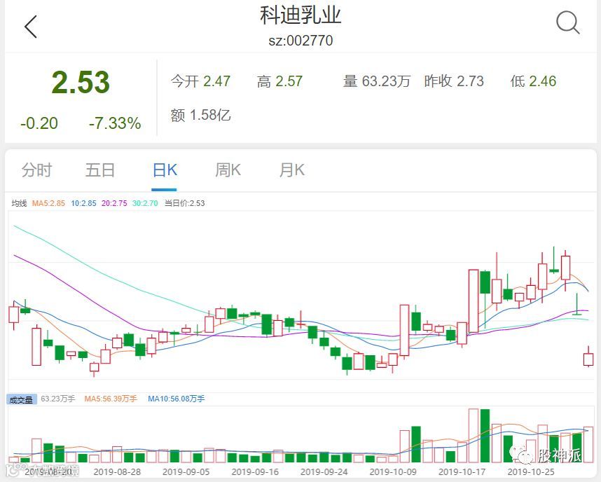 受三季报影响,10月31日科迪乳业很快上演了A股跌停的行情。11月1日,科迪乳业延续上一交易日弱势继续跌停。