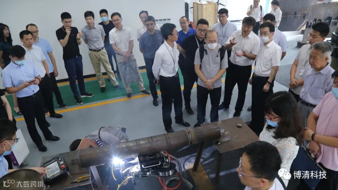 会议期间,与会的各位领导专家来到博清科技展厅,听取了博清科技公司介绍,了解了公司在全球九国专利布局情况以及全球业务布局情况。通过视频和图文形式了解了公司核心产品,即属于国际原始性创新的无轨导全位置爬行焊接机器人、无轨导全位置管道焊接机器人在油气化工、轨道交通、核电工程、能源电力、船舶制造五大领域的应用情况。领导和专家们还饶有兴致地了解了博清科技历年来获得的各类荣誉和奖项,对博清科技取得的不凡业绩表示赞许。