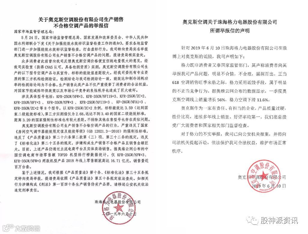 6月10日,最大的瓜不是什么明星娱乐圈,而是格力和奥克斯两家电器大厂登上了热搜榜。起因是格力电器官方实名举报奥克斯,认为其生产销售了不合格空调产品,指出奥克斯空调价格便宜但耗电量很大,其产品和宣传的标称能效值差距较大,并且能效比和制冷消耗功率检测结论均不合格。