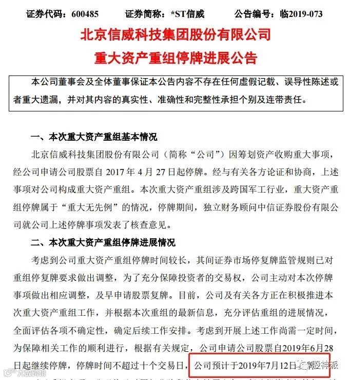 而周日晚上,又来一个雷,这一次是定时炸弹,有多么奇葩呢?停牌了2年7个月信威集团,不对,已经是ST信威。公告说要在7月12日复牌。