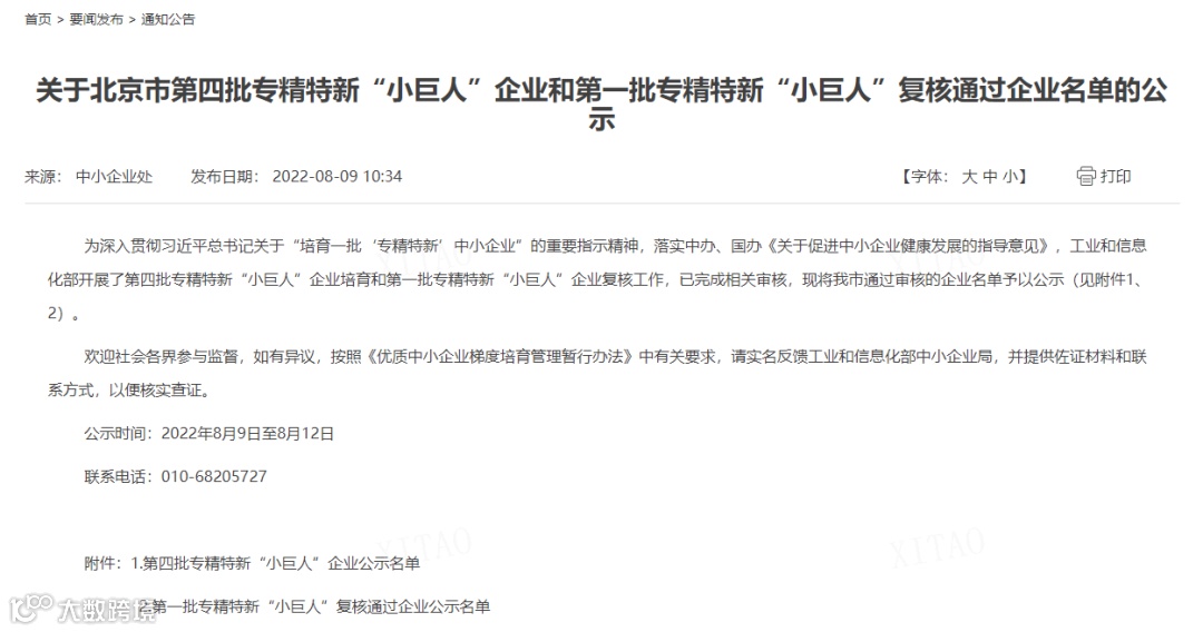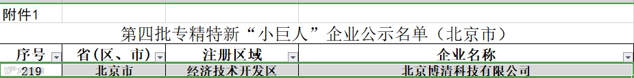 近期,北京市经济和信息化局公布了最新一批国家级专精特新“小巨人”名单,北京博清科技有限公司成功入选。
