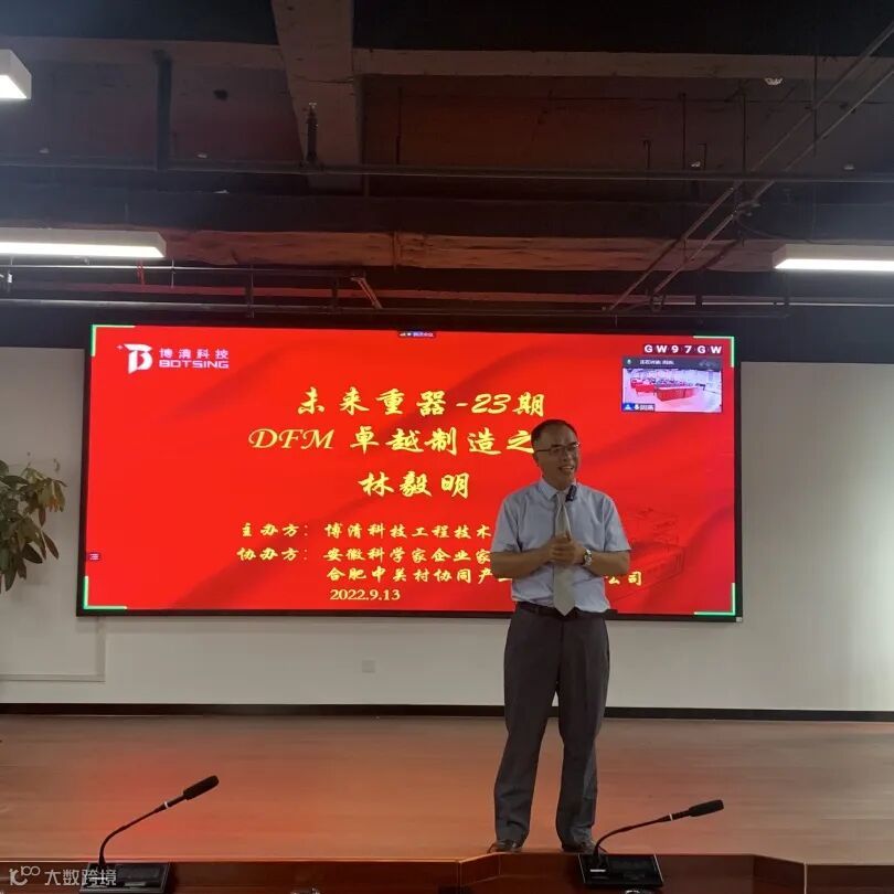 2022年9月,博清科技“未来重器23期-DFM卓越制造之路”主题论坛圆满落幕。本次论坛由博清科技工程技术中心主办,安徽省科学家企业家协会和合肥中关村协同产业发展有限公司协办。本期论坛特邀比特咨询首席顾问、北京大学汇丰及光华管理学院约聘讲师林毅明教授讲授。
