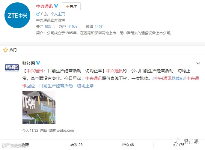 中兴通讯突然大跌,根据可靠消息,和美国政府近期动作有关。