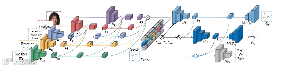 其中针对不同演讲者的数据,网络也采取了不同的对抗损失来辅助提升生成动作的多样性。