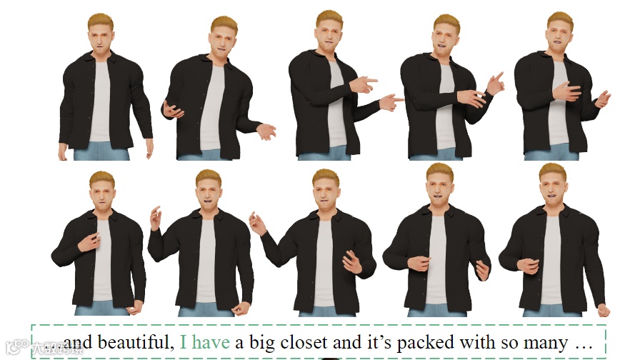 随着元宇宙的火爆以及数字人建模技术的商业化,AI 数字人驱动算法,作为数字人动画技术链的下一关键环节,获得了学界和工业界越来越广泛的兴趣和关注。其中谈话动作生成 (由声音等控制信号生成肢体和手部动作)由于可以降低 VR Chat, 虚拟直播,游戏 NPC 等场景下的驱动成本,在近两年成为研究热点。然而,由于缺乏开源数据,现有的模型往往在由姿态检测算法提供的伪标签数据集或者单个说话人的小规模动捕数据集上进行测试。由于数据量,数据标注的缺乏和数据质量的限制,现有的算法很难生成个性化,高手部质量,情感相关,动作 - 语义相关的动作。