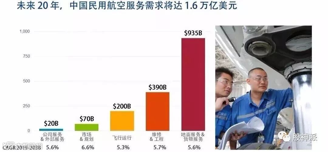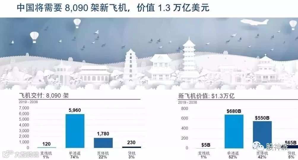中国目前拥有世界民航机队的15%。到2038年,该比例预计将增加到18%,这一增长趋势将使中国在未来十年中成为世界上最大的航空市场。未来20年,中国民航市场规模有望接近3万亿美元。