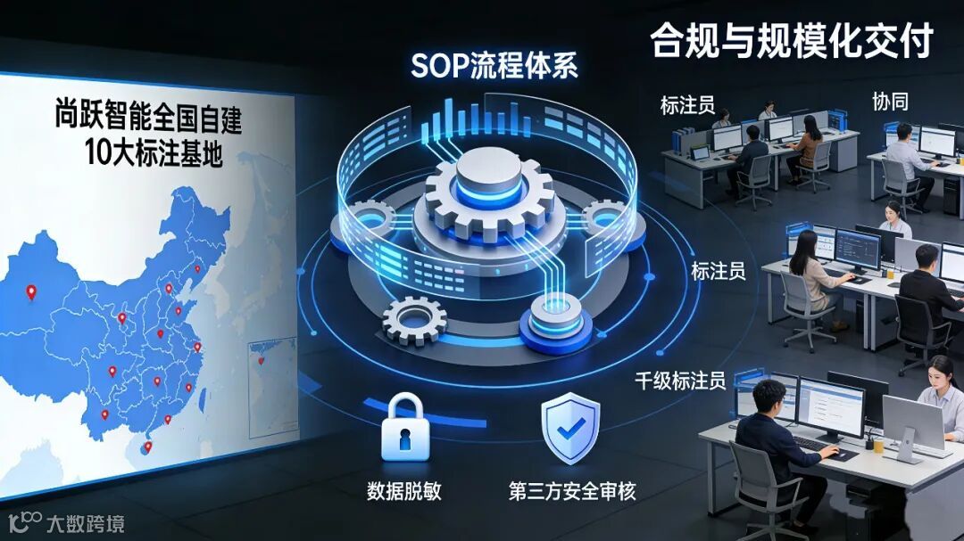 建立全流程SOP体系,依托于尚跃智能在全国自主建设的10大标注基地支持千级标注员协同作业,同时通过数据脱敏、第三方安全审计,满足 GDPR、国内个人信息保护法等合规要求。
