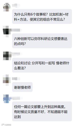 科研写作,是每一位科研工作者都绕不开的话题。慢老师从写作步骤入手,详细介绍了 SOP 模型,从科学问题的提出,到预实验的设计,再到框架的搭建,每一步都至关重要。在数据收集与分析环节,AI 的助力让这一过程变得更加高效。而论文投稿后的优化,更是需要我们在逻辑、语言和配图等细节上反复打磨。标题和 Highlight 的写作,需要我们用简洁明了的语言直接反映核心创新;摘要与结论部分,则要通过严谨的五步法和精简的表达,清晰地呈现研究的全貌。图与证据链的布局,更是需要我们精心设计,让每一幅图都成为证明创新的关键证据,而证据链的环环相扣,则让我们的论证更加无懈可击。在引言、结果与讨论等各个部分的写作中,慢老师都给出了具体的写作方法和案例分析,让我们在实际操作中有了清晰的方向。