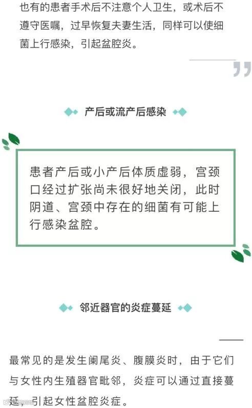 如果在月经期间不注意卫生,使用卫生标准不合格的卫生巾或卫生纸,或有夫妻生活,就会给细菌提供逆行感染的机会,导致盆腔炎。