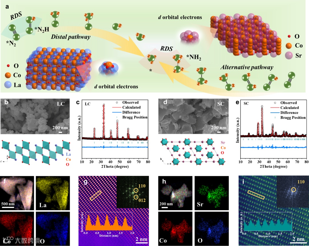 图2: SEM图像显示,二者呈现出相似的纳米颗粒形貌,在一定程度上排除了形貌因素对催化剂性能的干扰。XRD分析精确确定了LC属于R-3c空间群,SC属于R32空间群。EDX映射结果表明,材料中各元素分布均匀,且比例接近预期。HRTEM及FFT图像呈现出的特征衍射平面,进一步验证了晶体结构的完整性。