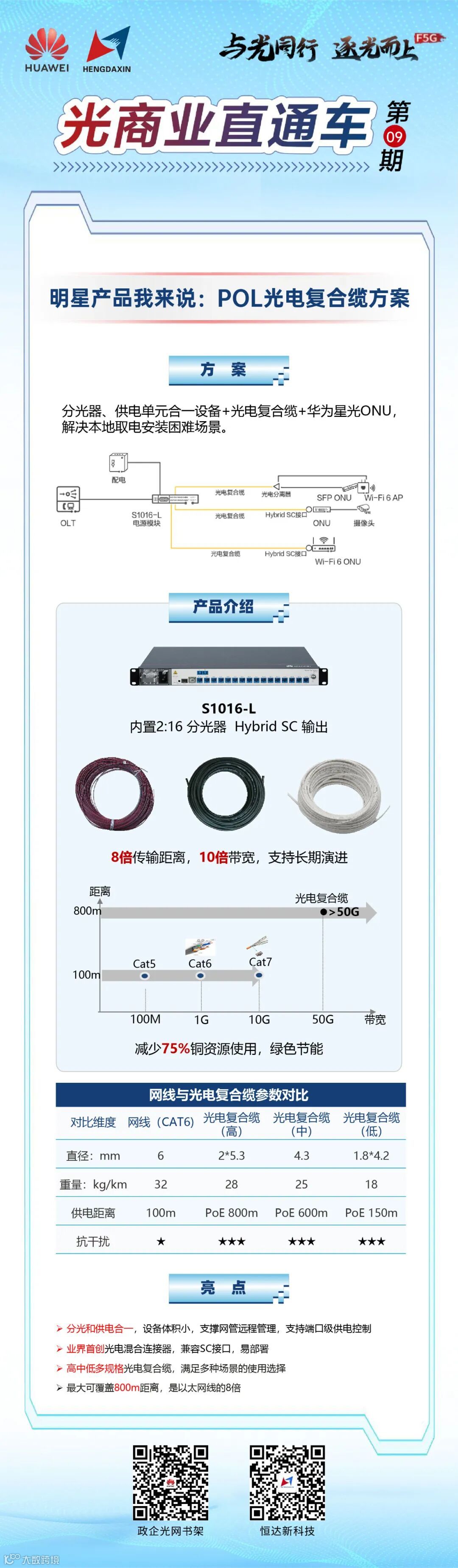 光器,搭配华为POL光电复合缆,完美契合PON网络特点,实现超远覆盖、灵活部署、节省空间、稳定可靠、支持PON网络持续演进等,打造无与伦比的通信体验!
