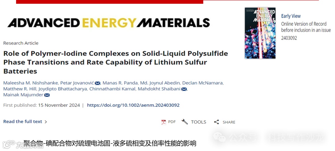 AEM-高分子碘配合物对锂硫电池固液多硫相变和速率能力的作用