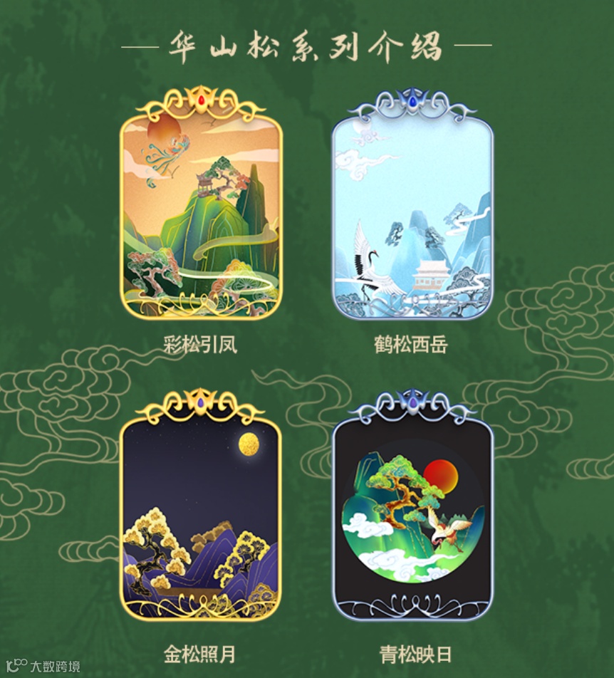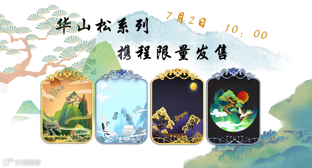 本次“华山松”系列数字藏品,共有4幅,分别为:“彩松引凤”“鹤松西岳”“金松照月”“青松映日”,总计发行2000份,每个系列各500份,由携程平台进行发售。