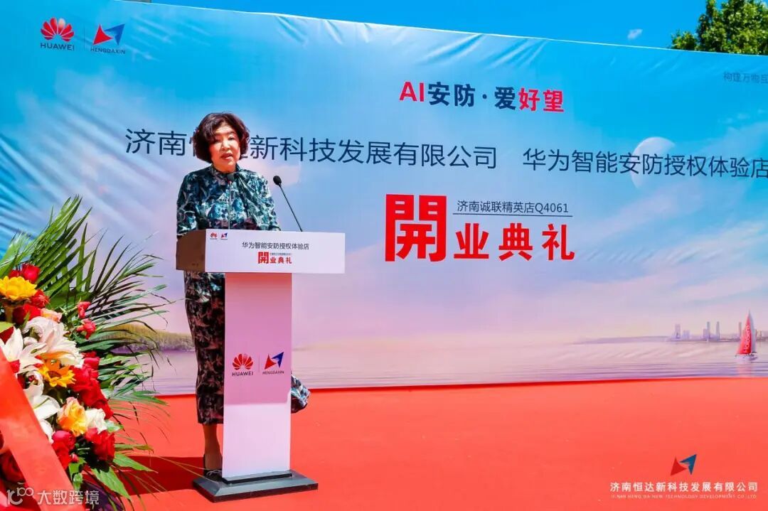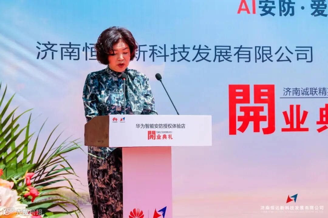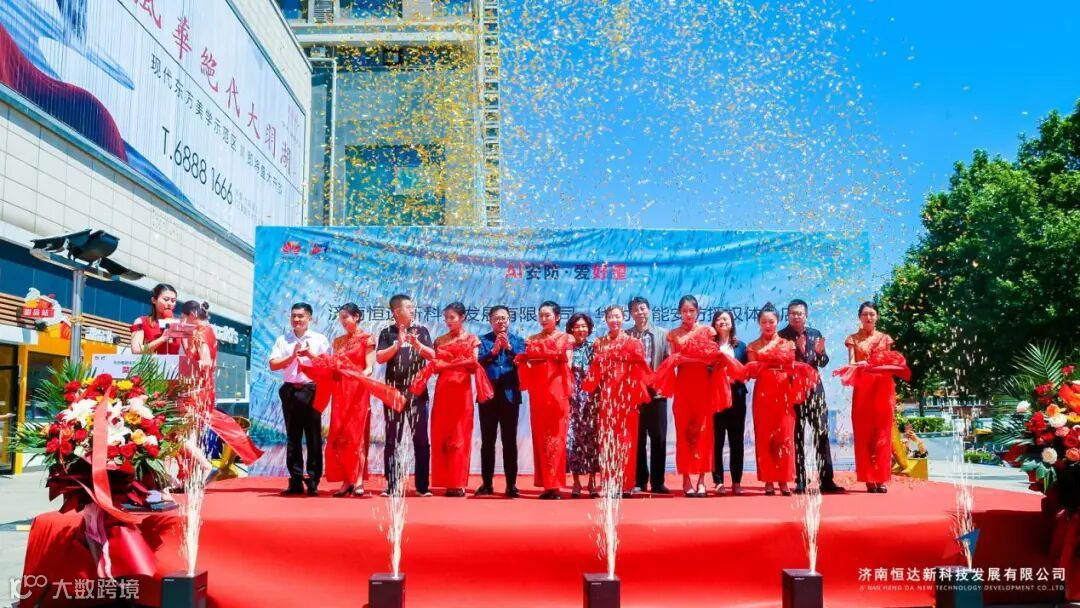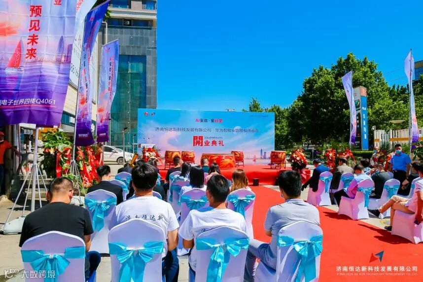 随后济南安防协会会长、华为山东办领导、华强总经理、恒达新李总等人为授权店开业剪彩。庆典现场人声鼎沸,热闹非凡。