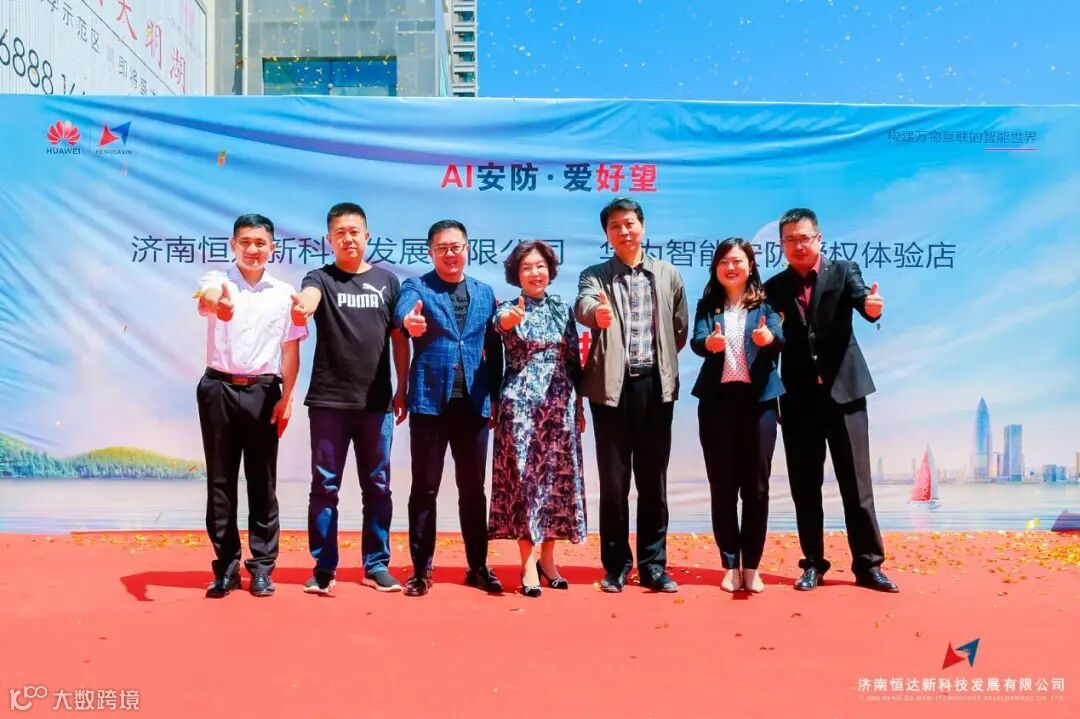 济南首家华为智能安防授权体验店在华强电子世界盛大开业。济南安防协会会长、华为山东办领导、华强总经理亲临现场,与济南恒达新科技发展有限公司全体人员及