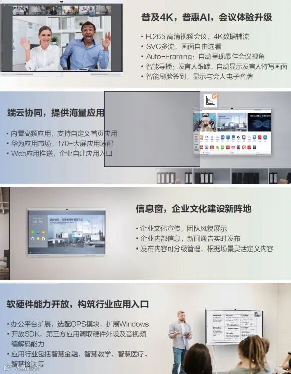 华为企业智慧屏是集智能书写、极清投屏、视频会议、开放办公应用为一体的智能终端产品,可以满足企业会议室、开放办公区、经理室、家庭书房等多场景的智慧办公需求。