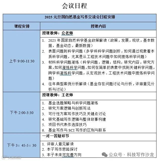 考虑到年底各高校工作繁忙,为开启节假日深度学习基金习作的机会,科鸿基金特邀基金写作沙龙金牌讲师公老师和王老师在元旦开展国自然基金写作线上培训会议!与会期间赠送一次一对一修改辅导