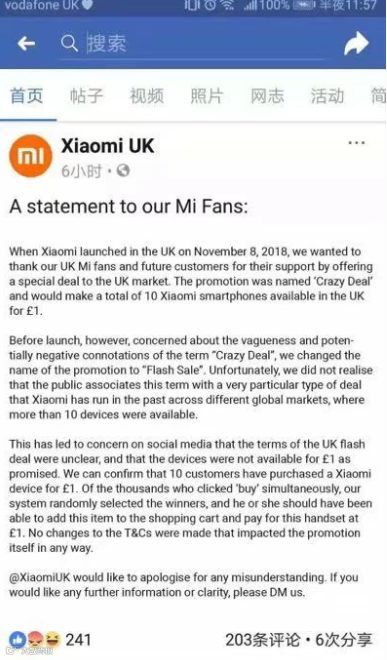 小米手机在举办1英镑抢购活动引众怒,官方回应道歉
