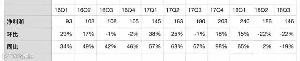 但值得注意的是,财报里提到,净利润的增长是由于投资收益较去年有所增加。细读财报,发现这个季度的投资收益为87.62亿,那么,如果剔除这部分收益。净利润变化如图。同比增速为-19%。这样一改,净利润大大低于预期。