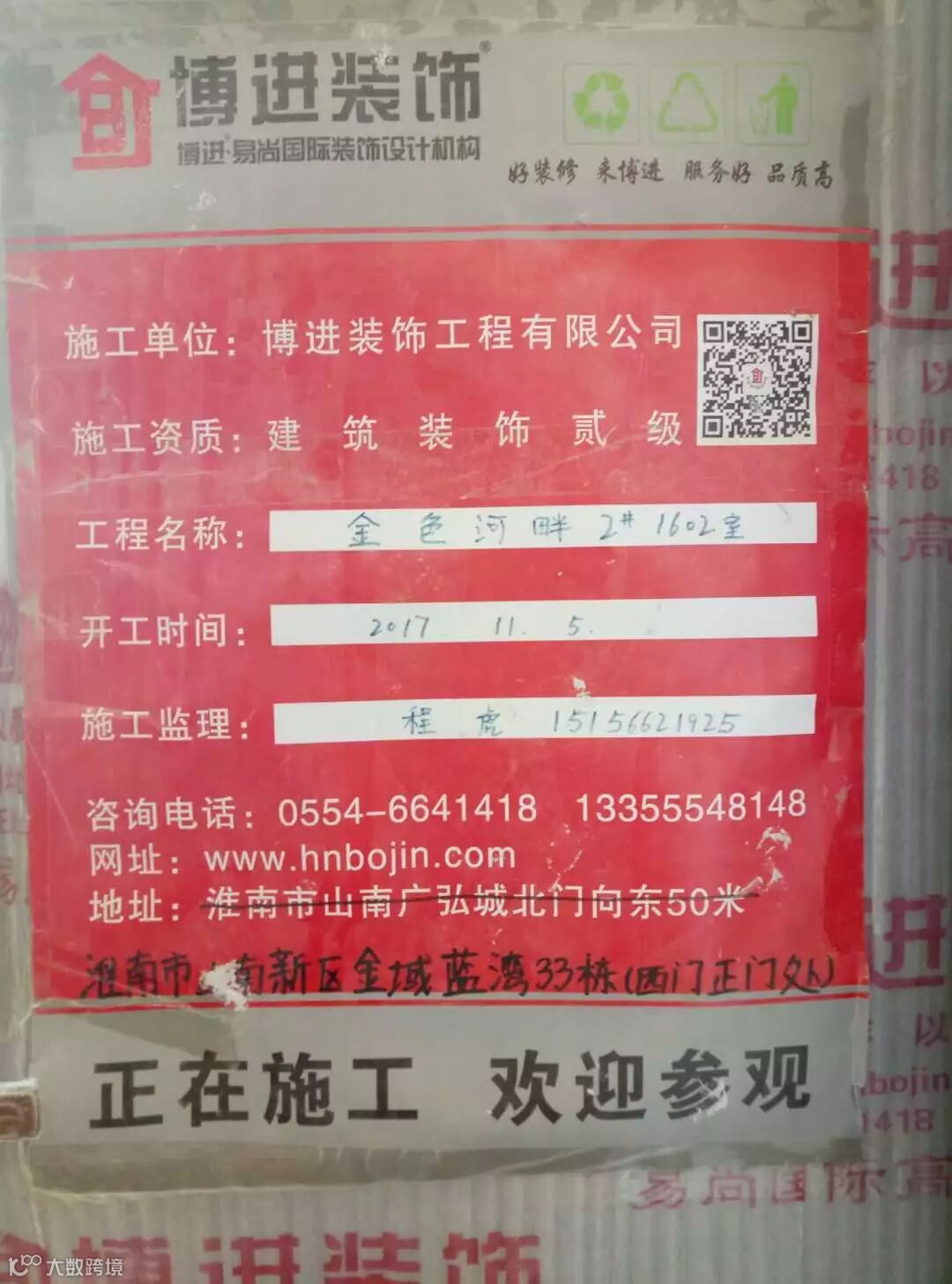 博进装饰坚持用行动保证工地质量,维护消费者的权益!