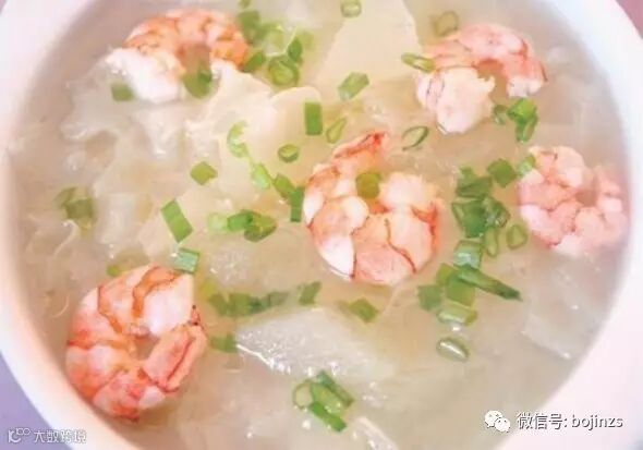 冬瓜含有多种维生素和人体必需的微量元素,可调节人体的代谢平衡,冬瓜性寒,夏季吃也能够清胃火。虾仁营养丰富,肉质松软,易消化,对身体虚弱以及病后需要调养的人是极好的食物;虾肉中含有丰富的镁,能很好的保护心血管系统,它可减少血液中胆固醇含量。