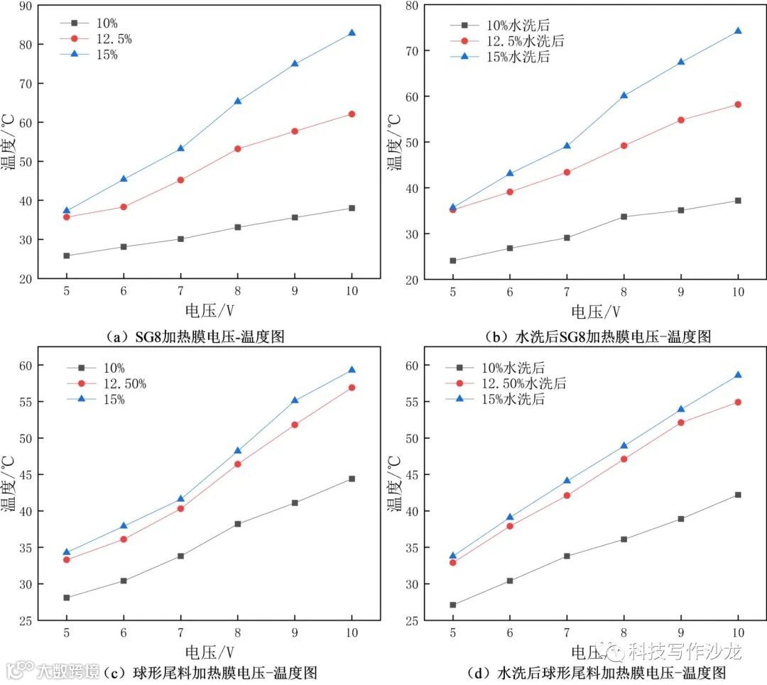 随着球形石墨在锂离子电池负极材料的应用,天然鳞片石墨球化过程中产生了大量的球形尾料,其利用率及附加值较低。本文将球形石墨(SG8)、球形尾料与羧基化纳米纤维素按不同比例混合,制备了六种柔性电热膜。通过调控球形石墨和球形尾料添加量、电压等参数,研究电热膜的电阻、电阻率和升温速率的演变规律。研究表明,在10V 电压下,球形尾料含量为15%的加热膜电阻率为8.57×10-3Ω/mm,达到发热最高温59.3℃,前30s 的升温速率为0.50℃/s,水洗后球形尾料含量为 15%的加热膜电阻率为9.30×10-3Ω/mm,达到发热最高温度58.6℃,前30s的升温速率为0.46℃/s,表明球形尾料电热膜水洗后仍具备良好的柔性和发热性能,证明了利用天然石墨球形尾料可制备柔性电热膜。相比于球形石墨,球形尾料具有更好的电热性能,为天然石墨球形尾料的高质化利用提供了解决途径。