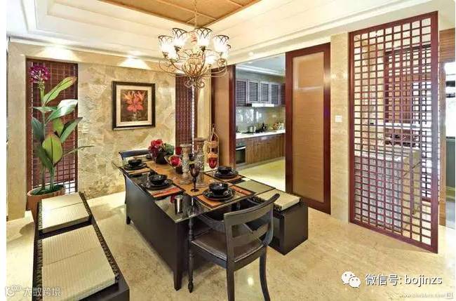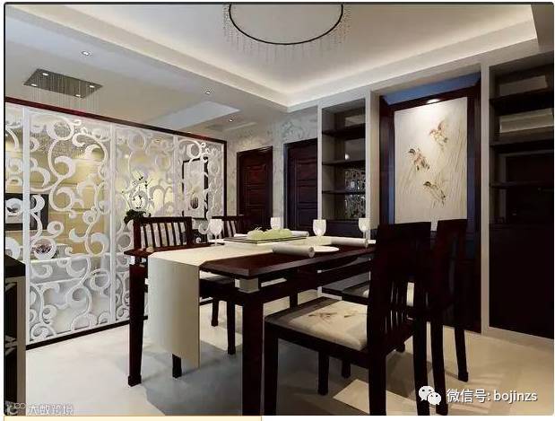 整套设计的中式餐厅也是一种不错的装饰方式,特别是新增的中式酒柜,很有典雅的韵味。