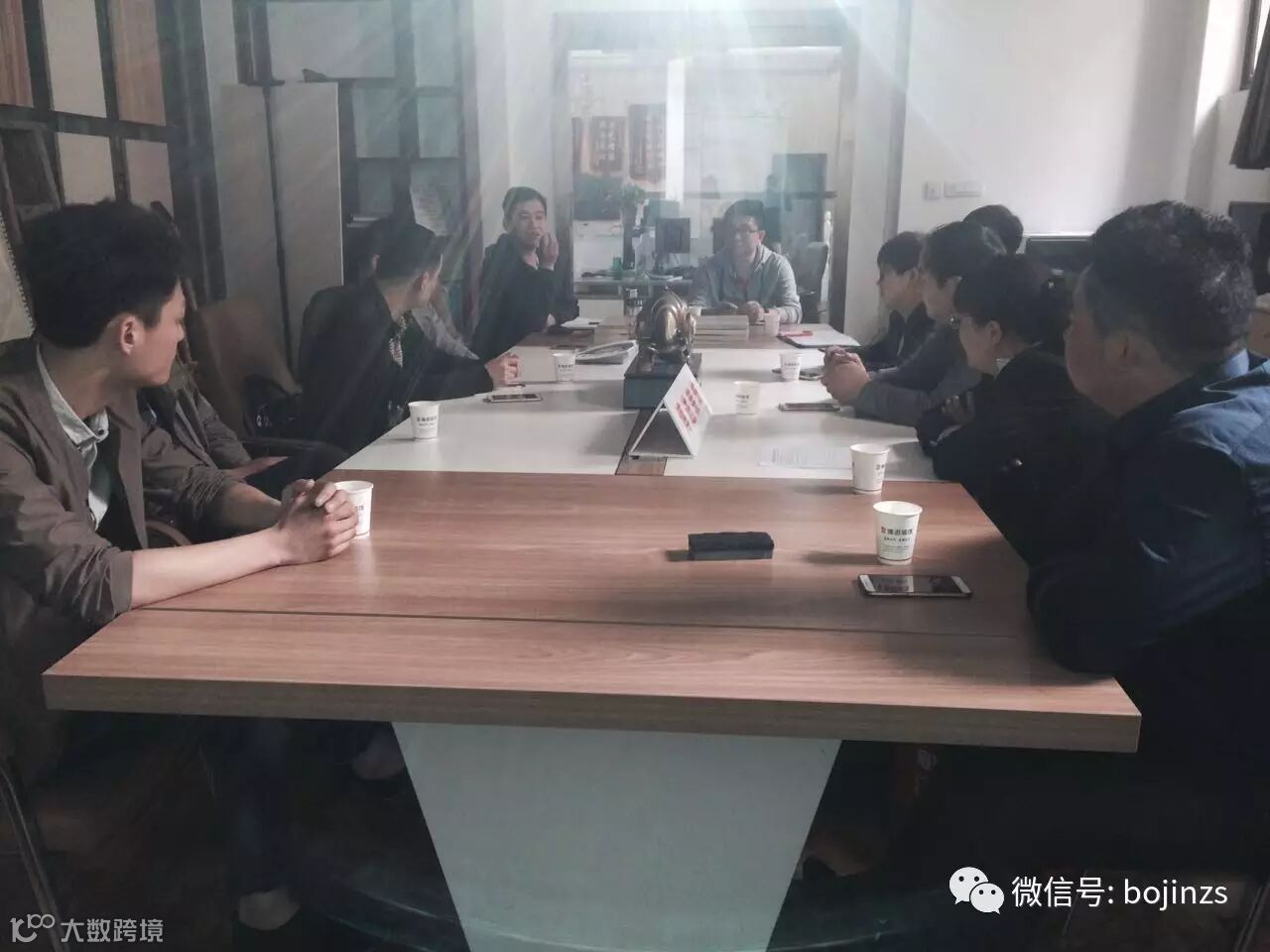 唐总在博进会议室与众材料商进行洽谈。
