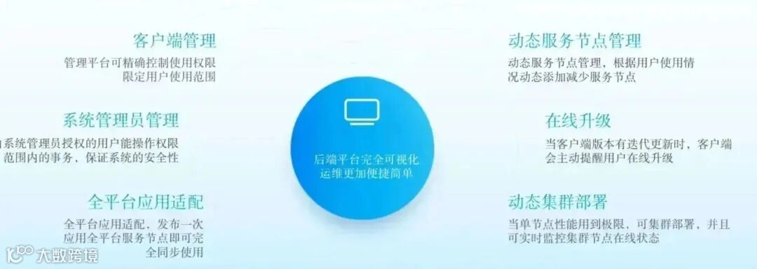 实现一个平台系统完成所有应用系统及外设的兼容适配,所需支撑的硬件依赖小,后期维护成本低。