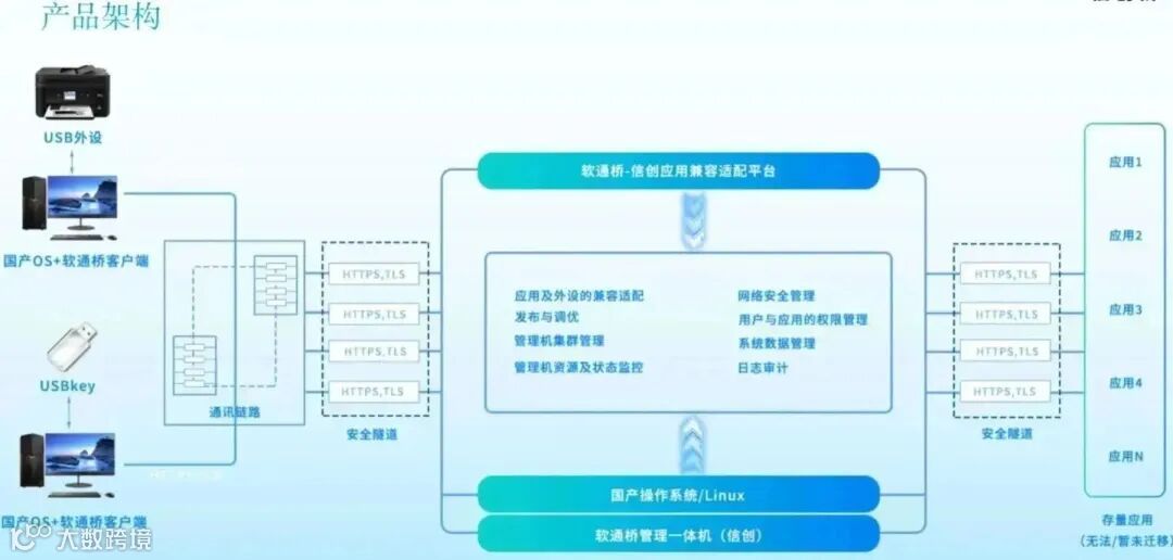 各单位在做信创建设推进的过程中,由于全部应用完全迁移到国产化平台上并且实现稳定运行,还有一定的技术难度和其它现实问题,需要一定的时间过程来解决,导致现在很多客户一个人办公采用两台PC机,原来的PC机访问未适配完的存量应用,信创PC机访问已经适配完的新的应用系统。信创兼容适配平台采用独特的虚拟化和USB挂载技术及完全自研的通讯代理及运行环境隔离技术等,将用户原Windows电脑的应用软件简单便捷的适配到新的信创电脑环境中,在信创电脑上正常使用原Windows的应用软件、外置设备等。管理员或用户可自主适配、发布和管理需要兼容运行的软件,既可单机离线使用,也可联网在线使用,根据需要既可使用本机计算资源,也可使用网络计算资源。产品构架于信创环境上,安全合规,自主可控。平台产品兼容适配系统的部署,不需要改变现有网络和重新部署业务系统,用户使用与原习惯一致,以最低的成本、最小的影响为信创的推进铺平了道路,助力用户信创的顺利推进,让用户办公平滑无感的过渡到信创环境中。该系统连续两年被评为“信创产业优秀产品”,目前广泛应用于党政、公安、金融、能源、卫生、电力、医疗等行业及大型央国企。