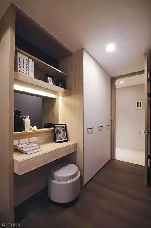 每个女人都对衣帽间有不可言说的情意,但有些家居空间不是很大,专门打造一个单独的空间是有点浪费,那么我们不放在走道里自己动手开掘出来。面积够用的话,直接按样式来挑选就可以了,镜子呢,可以在衣柜里成推拉形式。如果是特别爱照镜子的女人呢,直接在对面的墙上安装个大大的穿衣镜,打扮起来真是太爽了。
