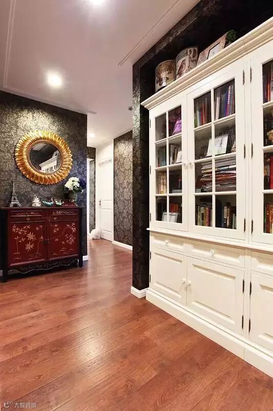 如果面积还是很宽敞的话,可以选择一款喜爱的格挡式的书柜摆放在过道中。倘若面积比较小的话,那我们只能自己进行设计了。在墙上安装很多的小书架,这样不短的小过道里应该可以摆放很多的书籍,爱书的人们估计要爱死这儿了。