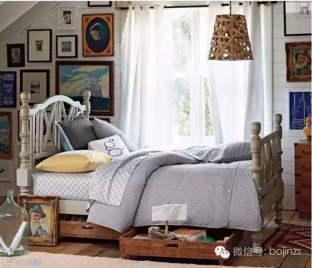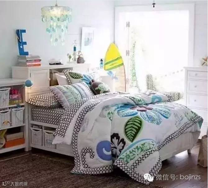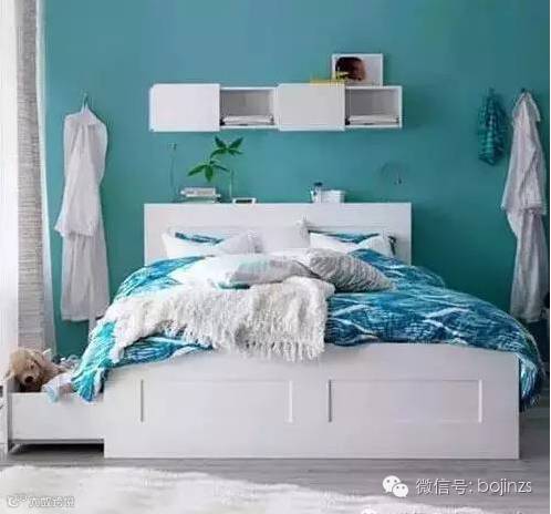 ▲白色和蓝色的房间干净、清新,夏日在这样的卧室入眠,想象着游在水中,