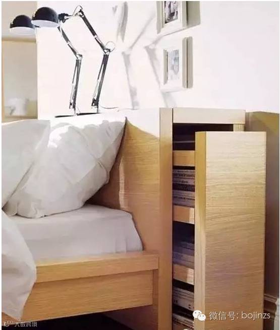 ▲这样的收纳隐藏的够深啊,将整个床板掀起就是分成很多格的收纳空间,厚点的被子之类的东西就可以藏在这里。不仅增加了功能,同时还节省了空间。