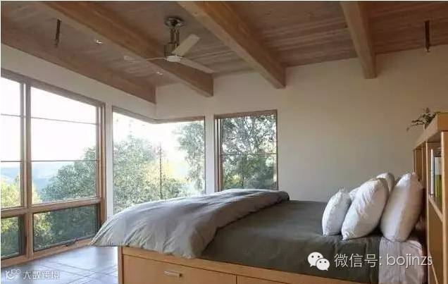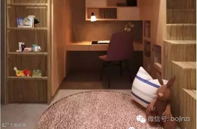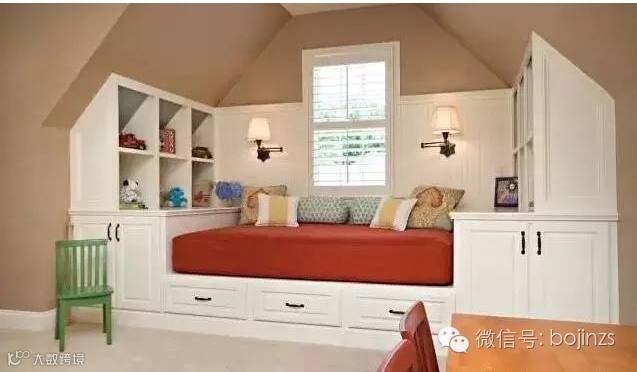▲床的周围装上柜子,一格格的空间放书和收藏品都可以。