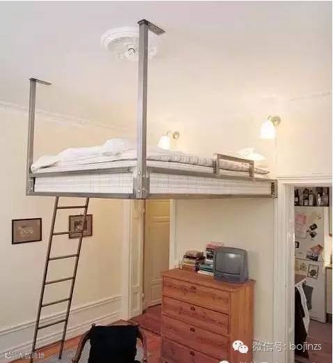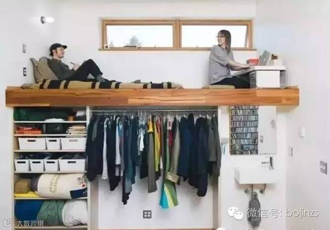 ▲两人的生活你不得不羡慕,床铺上移,下面放6层搁板,大小物品有序安放,一根衣杆,可以悬挂很多衣物。又宽又长的床铺上,两人一躺一坐,偶尔一个眼神交流,闲聊几句,生活的甜蜜可遇不可求。