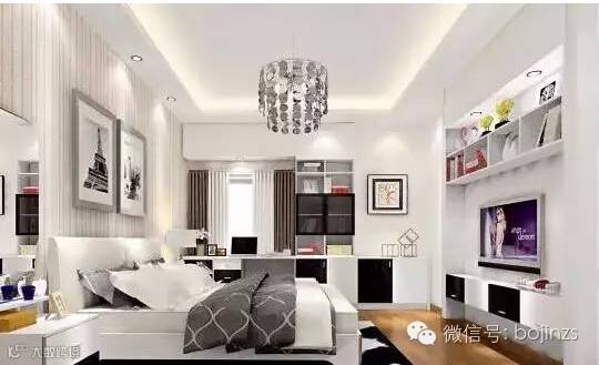 ▲床边有书是很多人都会想要的设置,但怎么样做到精致舒适,案例中是个不错的选择。在墙面上安排一组柜子,适当分隔做出收纳空间,这样的设计不用担心小卧室的视觉拥挤。