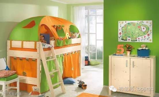儿童房主要是孩子的卧室、起居室和游戏空间,是孩子的自由天地。心理学专家建议房间装饰最好要符合孩子的生长年龄段,不同年龄特征有不同的爱好,房间的布置摆设也要随之做相应的变化。