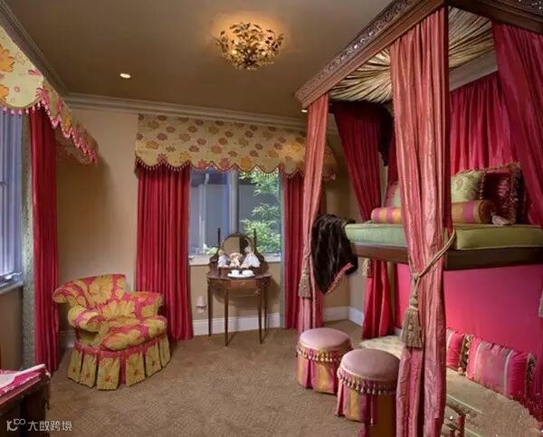 喜欢异域情调的女生房间,可以采用皮质和布艺来突出浪漫的独特情怀。
