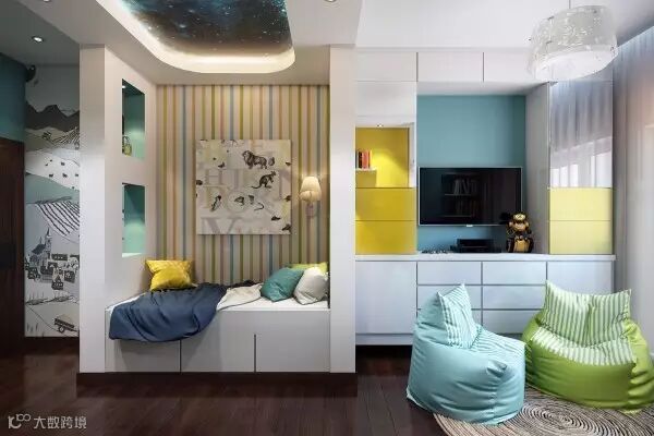 儿童房向来是家中最富于变化和展现想象力的房间,光线充足、颜色饱满可以为孩子营造童话般的活泼氛围。