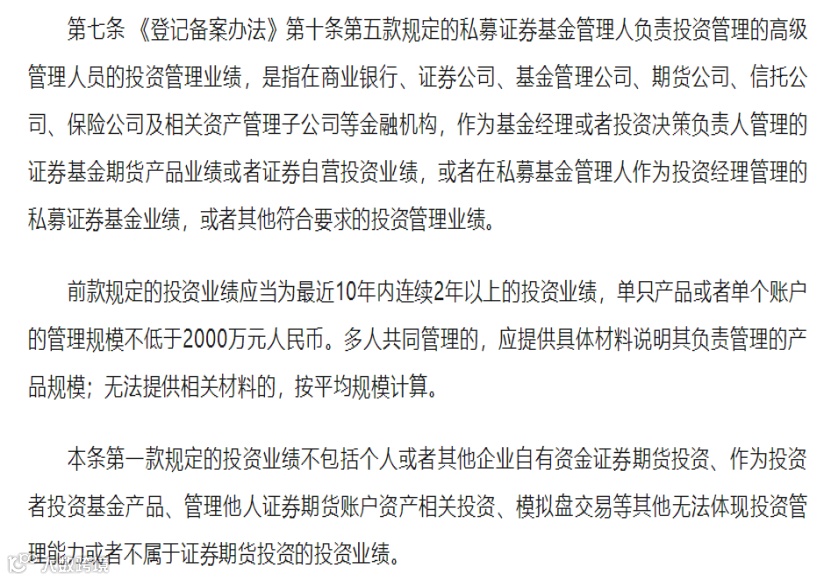 另外,负责投资管理的高管还需要提供符合新规的业绩证明材料。